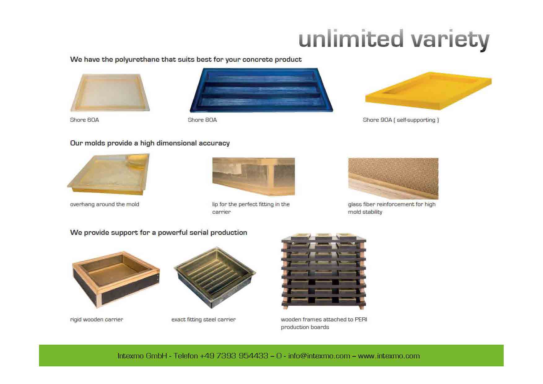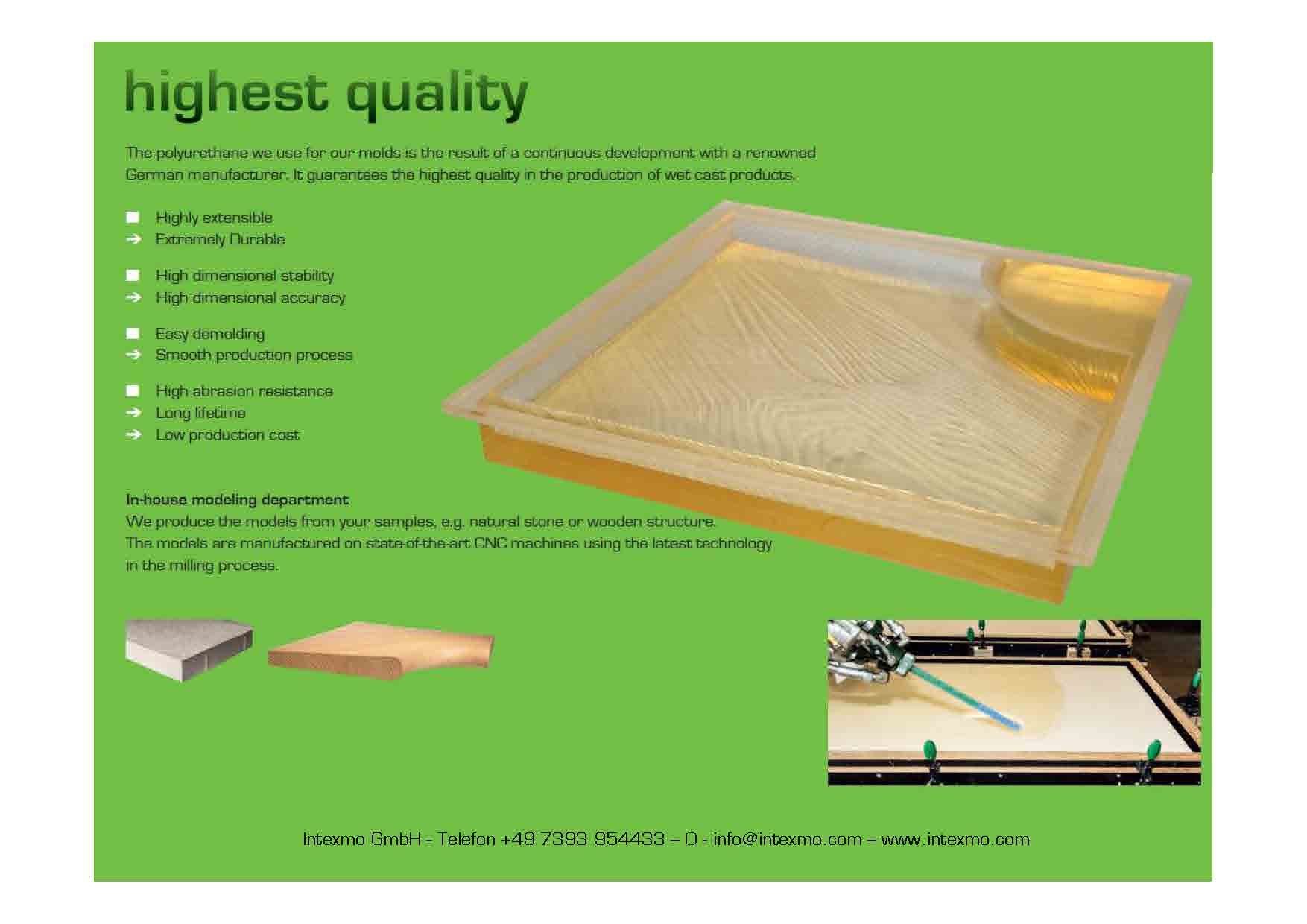 Mit den hochwertigen Polyurethanformen von Intexmo können Betonprodukte mit dem Aussehen von Naturstein, Ziegel, Holz und sogar Papier hergestellt werden!